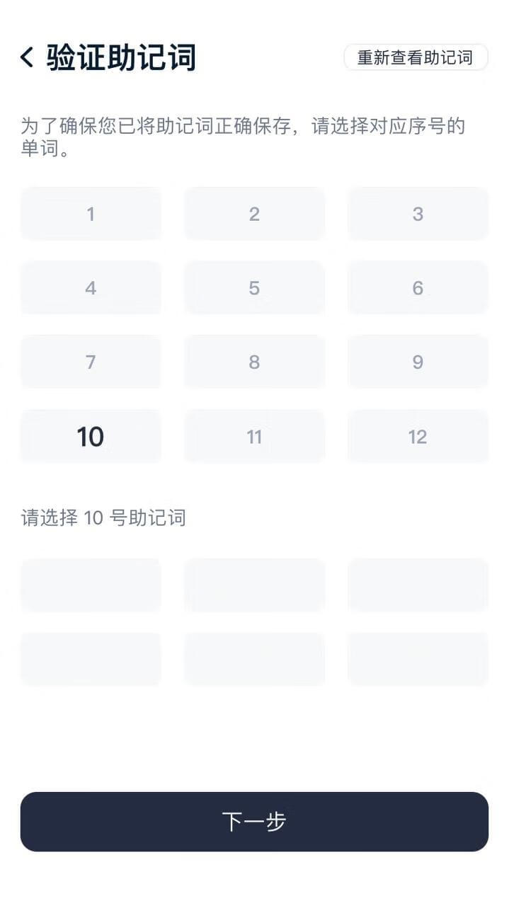 4.请记得注记词的顺序,开始验证,验证部分会是随机抽取12个的其中三个词。