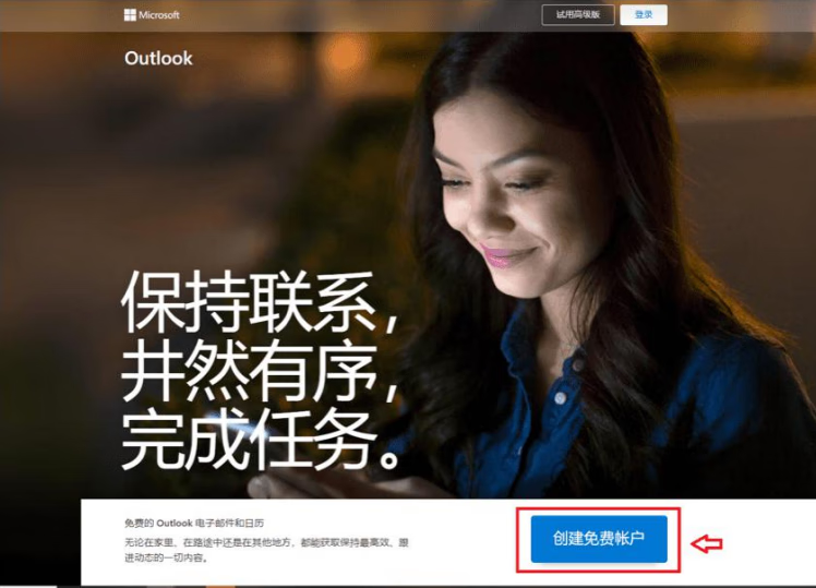 第一步:点击官网注册链接:https://outlook.live.com (无需翻墙访问),前往官网,点击【创建免费账户】